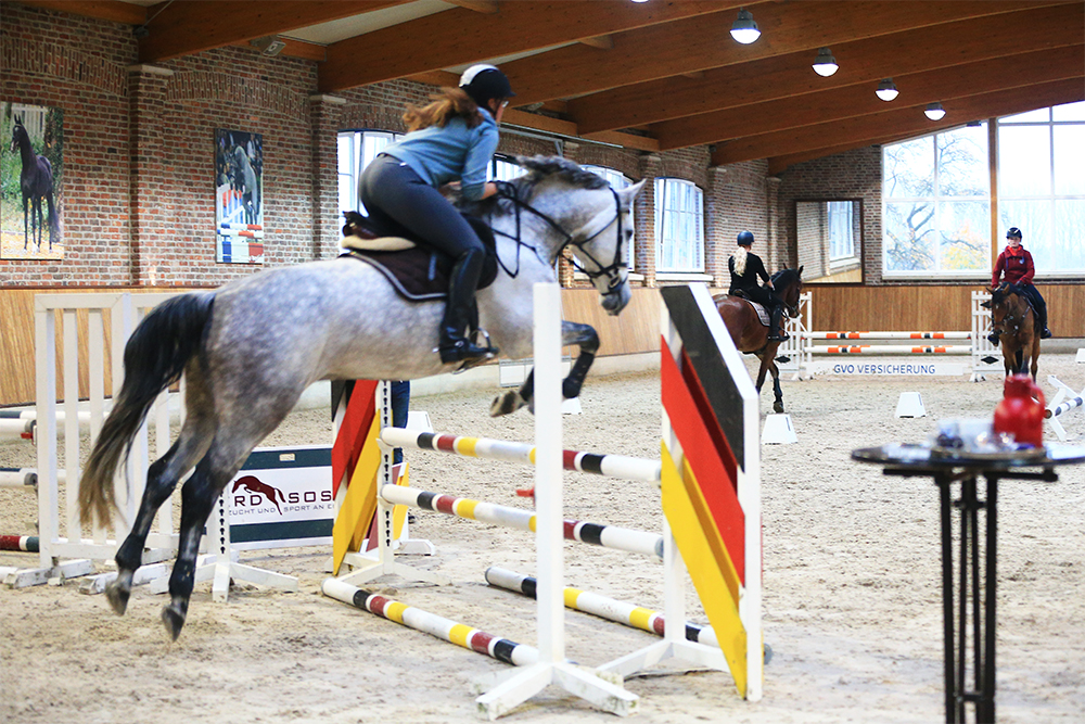 Mehr als 100 Reiter von Nachkommen der Stationshengste trafen sich am 10./11. November sowie am 1./2. Dezember zum Spring-und Dressurtraining bei uns auf dem Hof